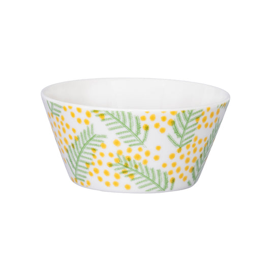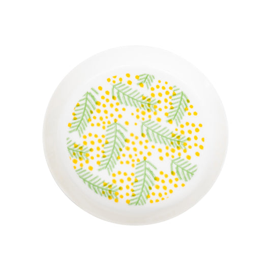 風に揺れたような葉と、可憐に咲くミモザの花がパッと食卓を明るくします。