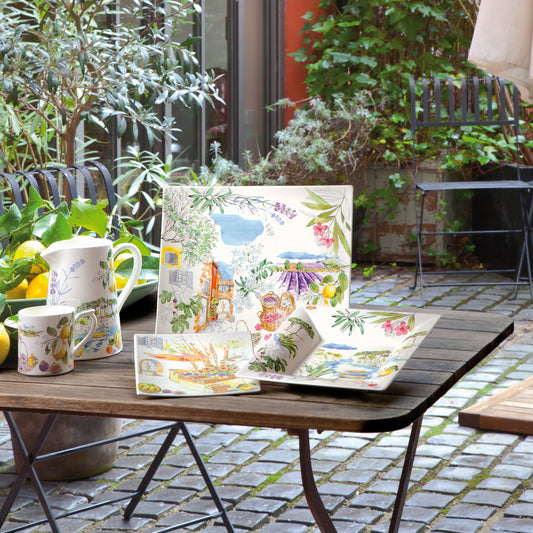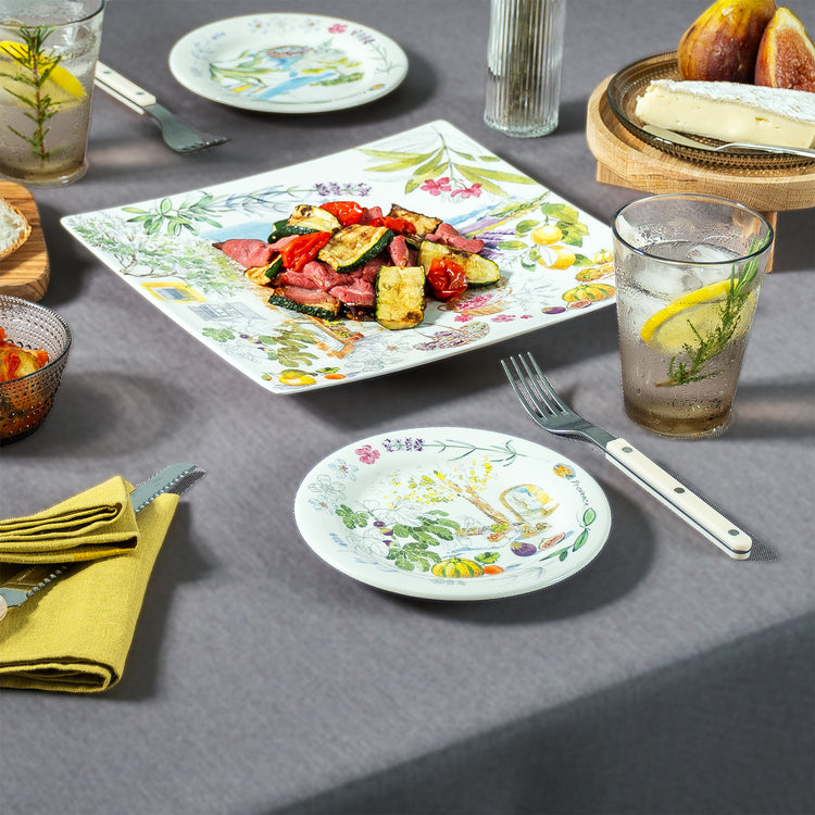 南フランスの風景がのびやかに描かれたプレートは、プロヴァンス地方のやわらかな光と風を食卓に運んでくれます。