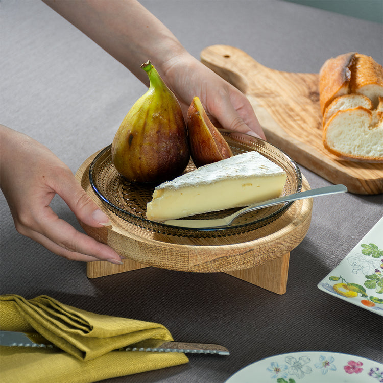 ジアン〈プロヴァンス〉や木の素朴な温もりと、イッタラのガラスが持つ洗練された佇まい。