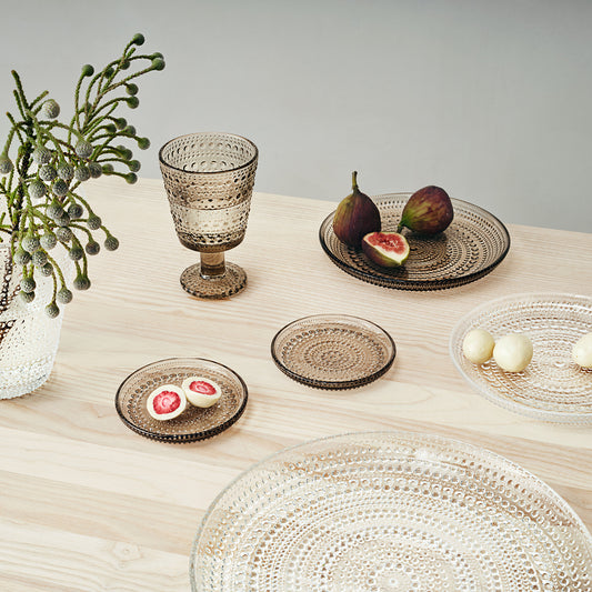 ジアンのプレートが主役になるよう、グラスや小物類はニュアンスのある色をセレクト。