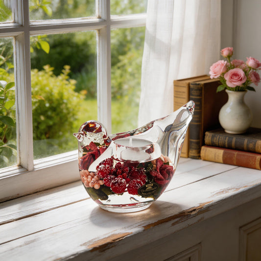 花をまとった小鳥たちが、その想いをそっと運びます。