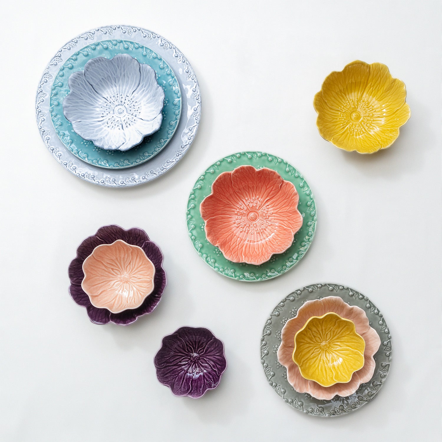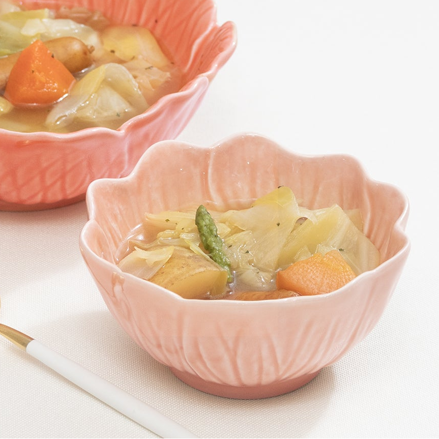 ポルトガルの有名食器ブランド・ボルダロより新しいシリーズ『Floraフローラ』が誕生致しました。野バラが咲いた様なボウルは美しい4色カラー展開。表面の光沢ある釉薬は柄をより引き立たせています。