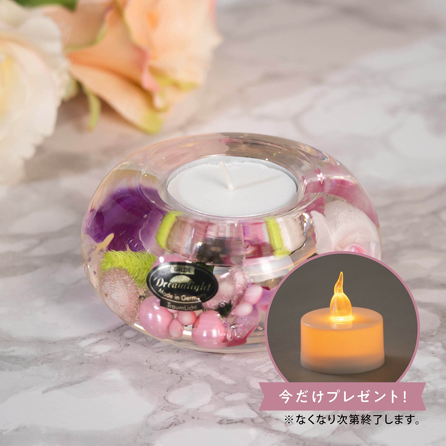 <数量限定>通常のキャンドルに加え、数量限定でLEDキャンドルをセットにしてお届けいたします。