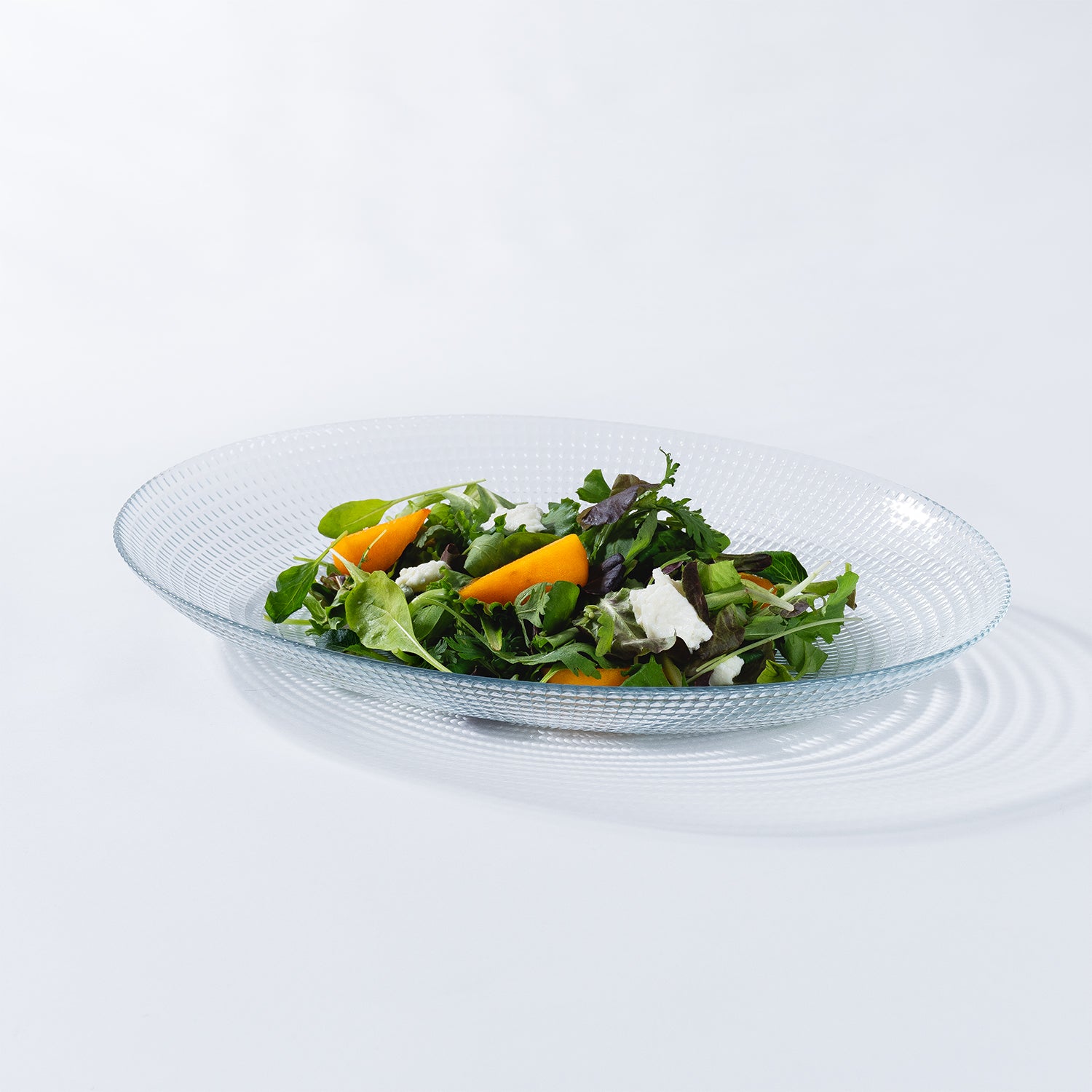 食卓に軽やかなリズムを添えるオーバル型のガラスプレート。