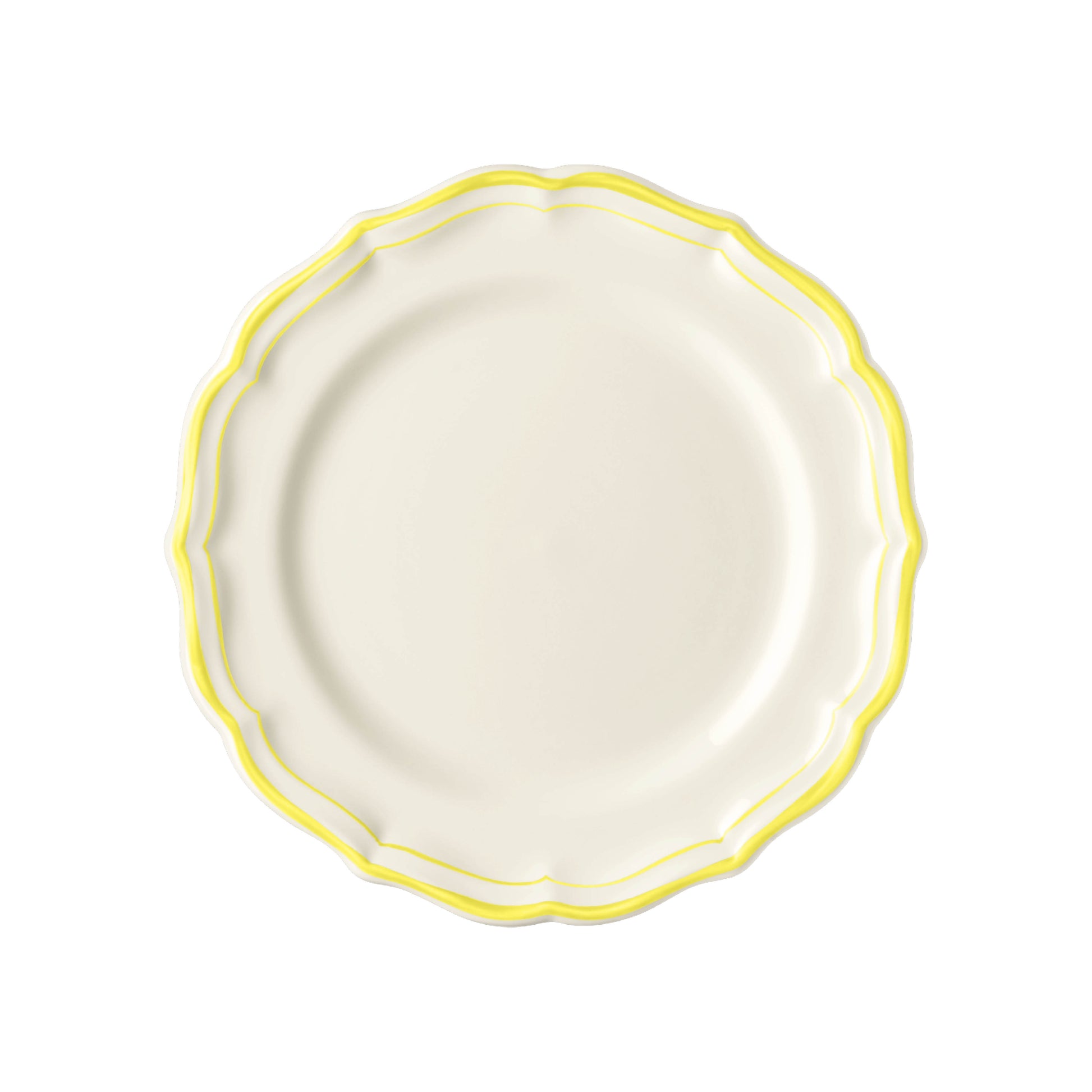 手描きの縁取りに、レモンのような明るい黄色が映える、上品かつ軽やかなデザイン。