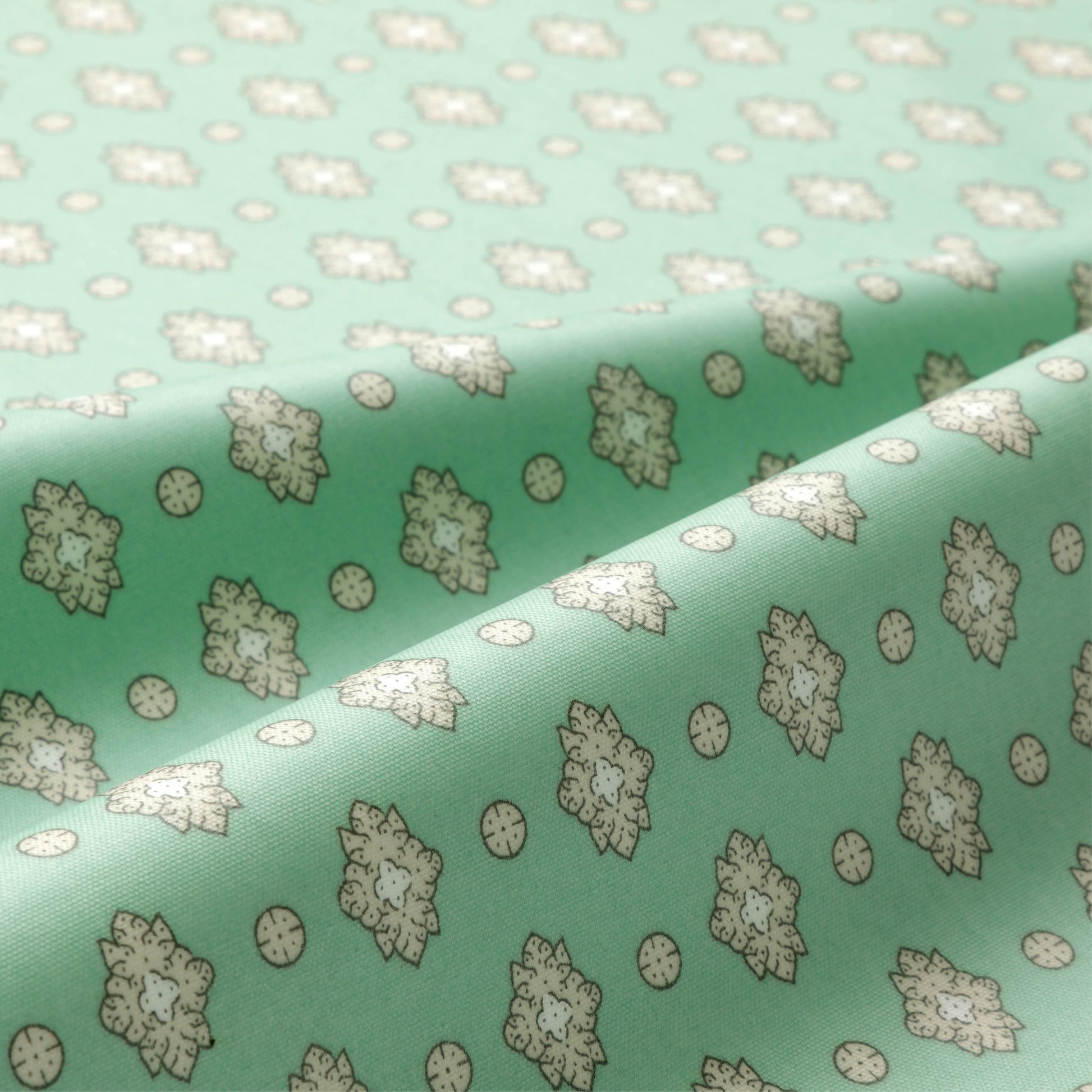 ラ・メルヴェイユは、プロヴァンスに伝わる古い言葉で、「おしろい花」を意味します。菱形に図案化された花のかたちと、白い粉を内包するおしろいの実をモチーフにした小紋柄。