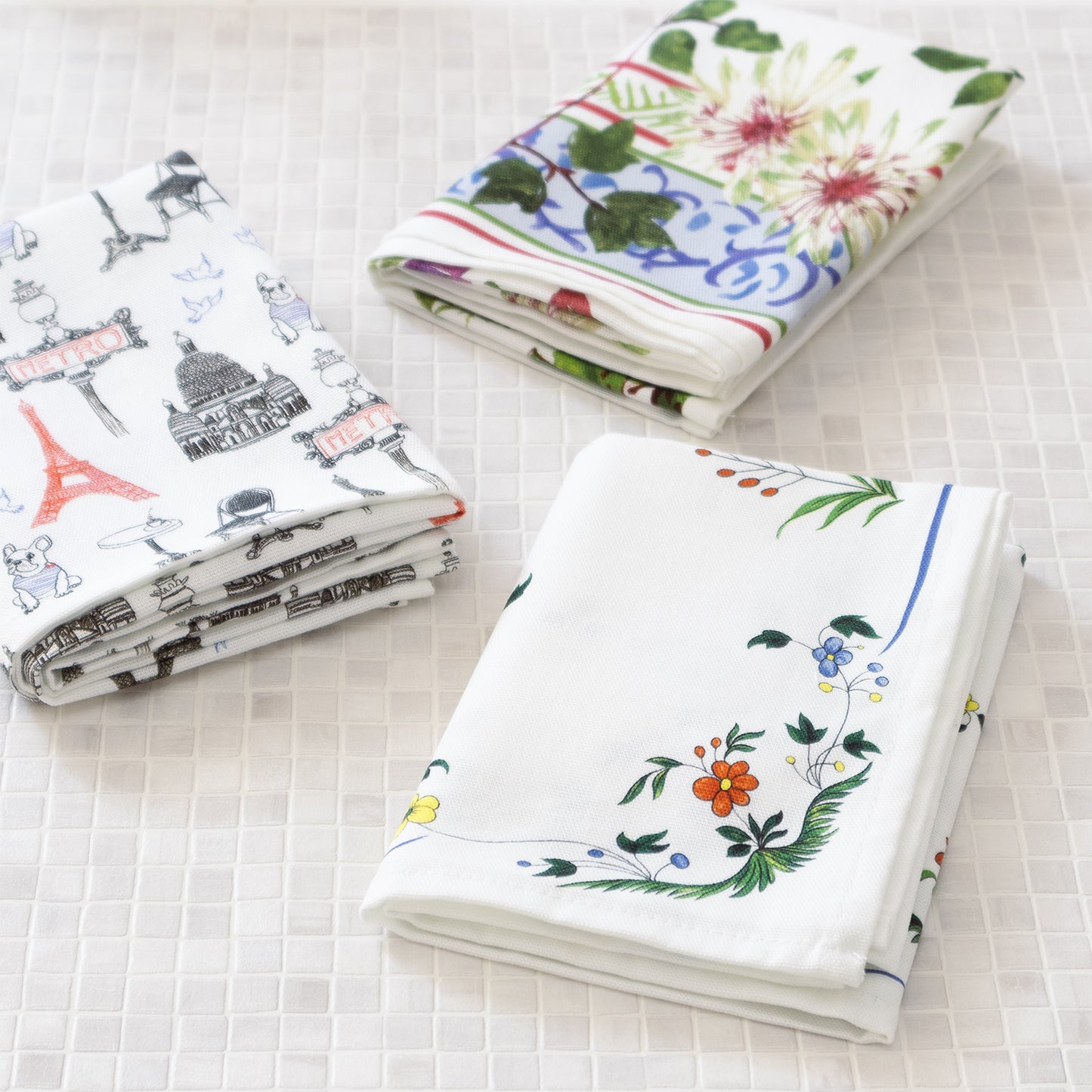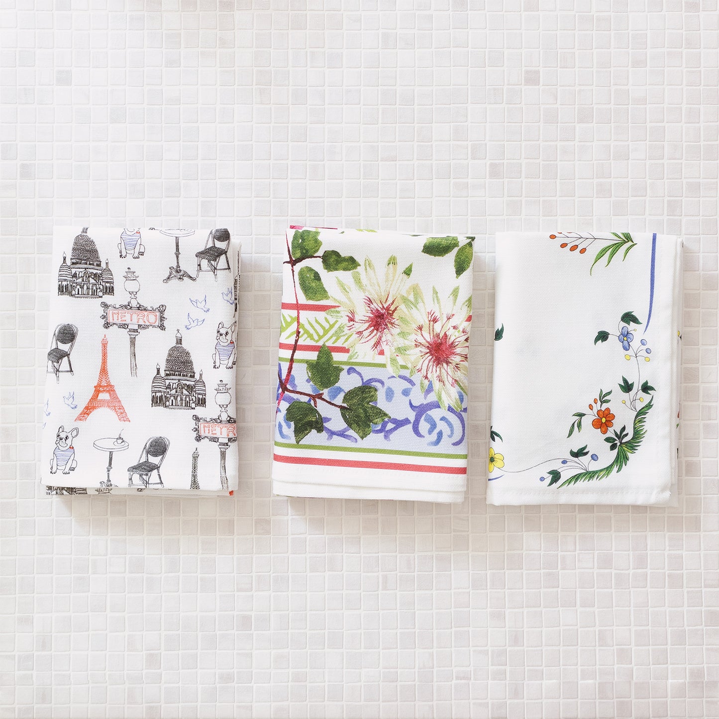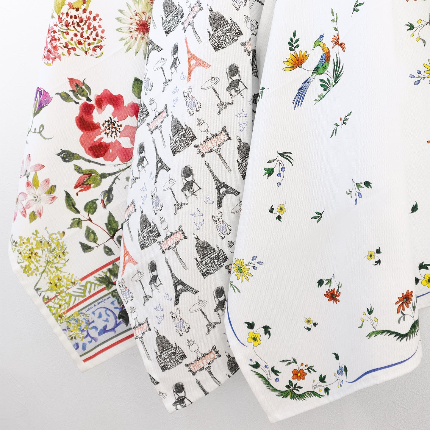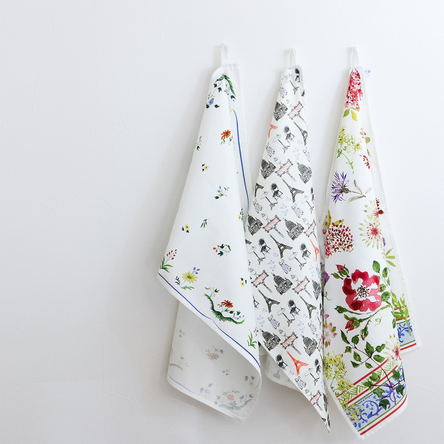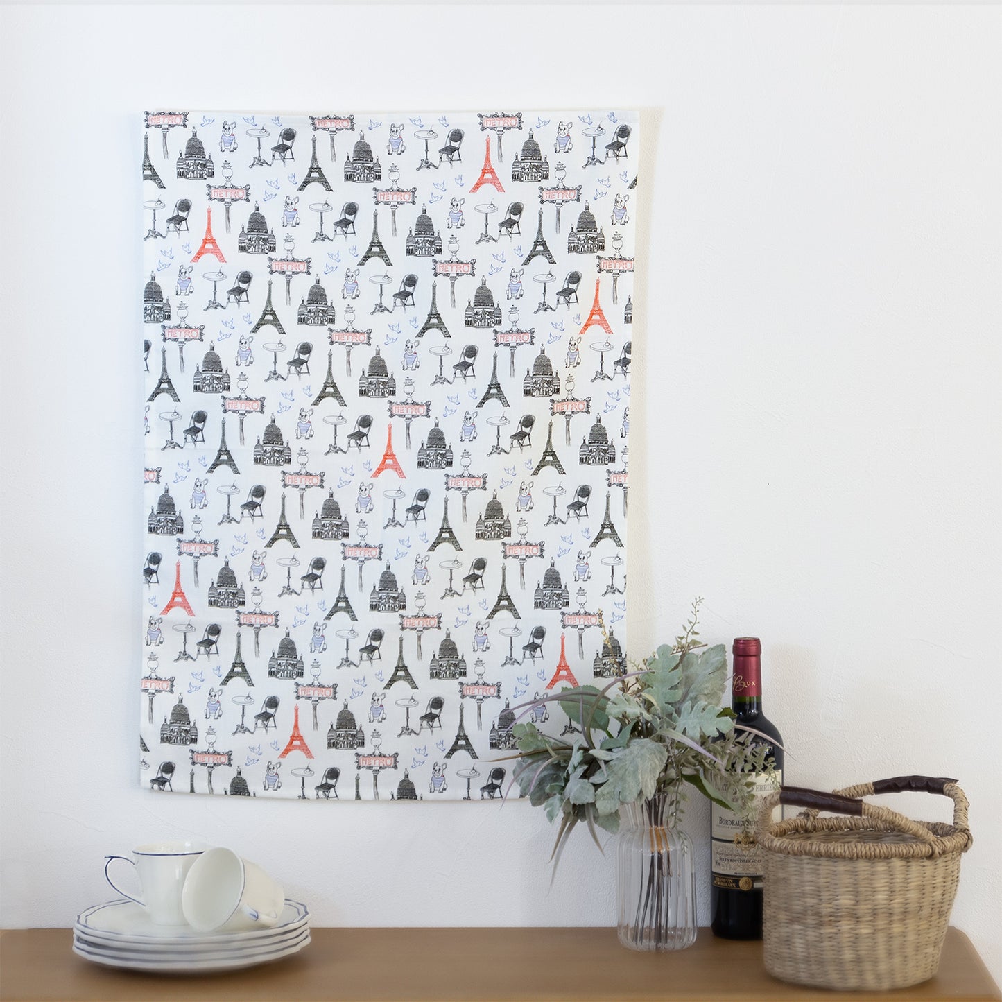 青、白、赤のトリコロールで描かれたフレンチカジュアルなテキスタイルは、 ファブリックポスターとしてお部屋に飾るのもおすすめです。