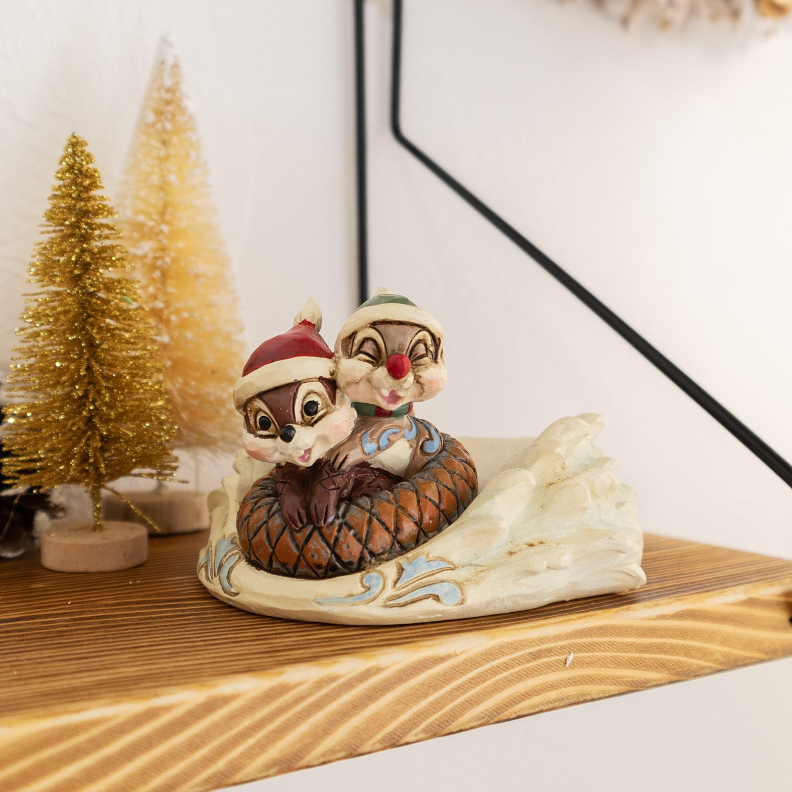 JIM SHOREが手掛けるDisney Traditionsからチップ&デールのフィギュアが登場。チップとデールの兄弟がドングリのヘタのソリに乗って雪山を滑り降りています。二人ともとっても楽しそうです。表情や仕草もとってもキュートです。コレクションはもちろん、誕生日のお祝い、お友達や大切な方へののプレゼントギフトとしてもオススメです。
