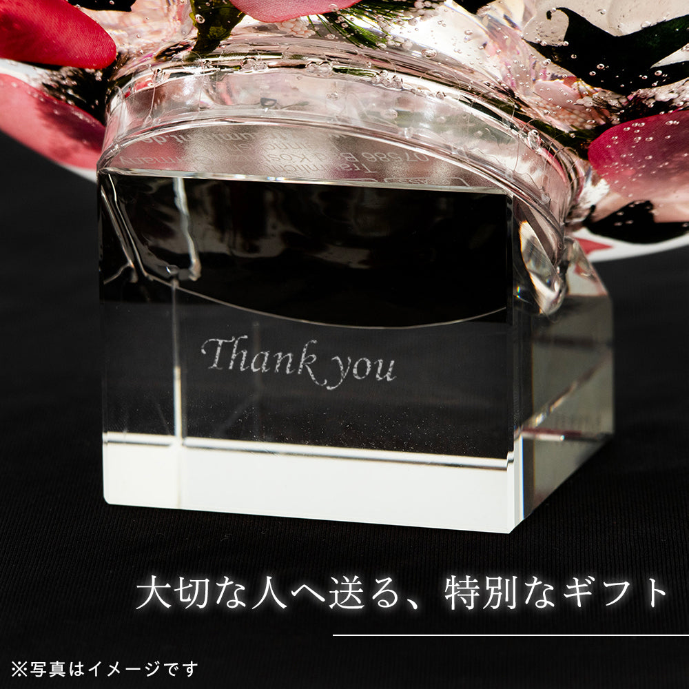 メッセージの刻印は、土台のガラス部分に直接彫刻するため、