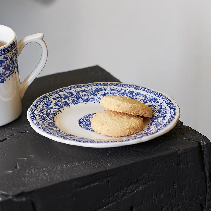 1830 年代、ジアンはルーアンに触発され、寓話的なプレートを飾る花の縁取りを作成しました。時代を超越したソフトブルー、ディテールに富み、エレガントでヴィンテージさが調和したシリーズです。