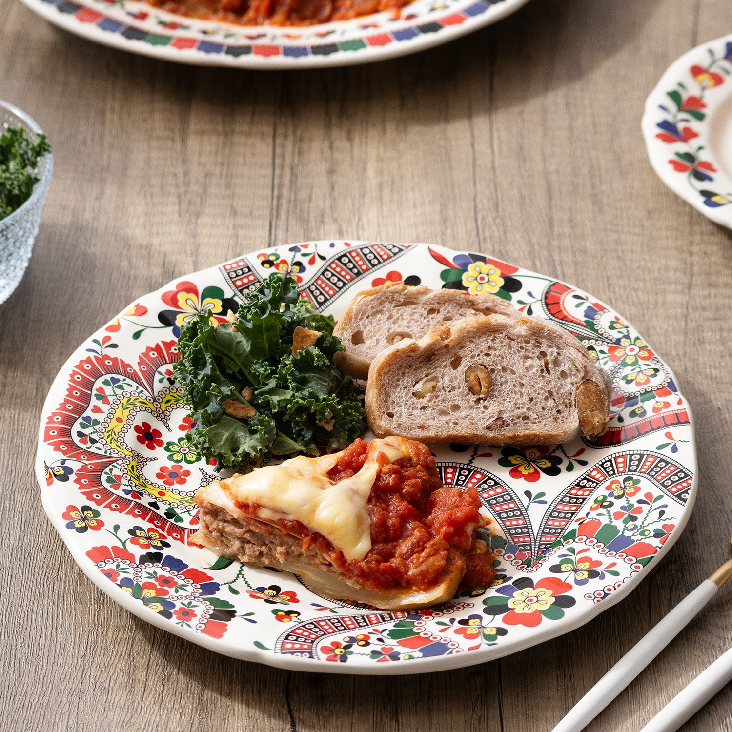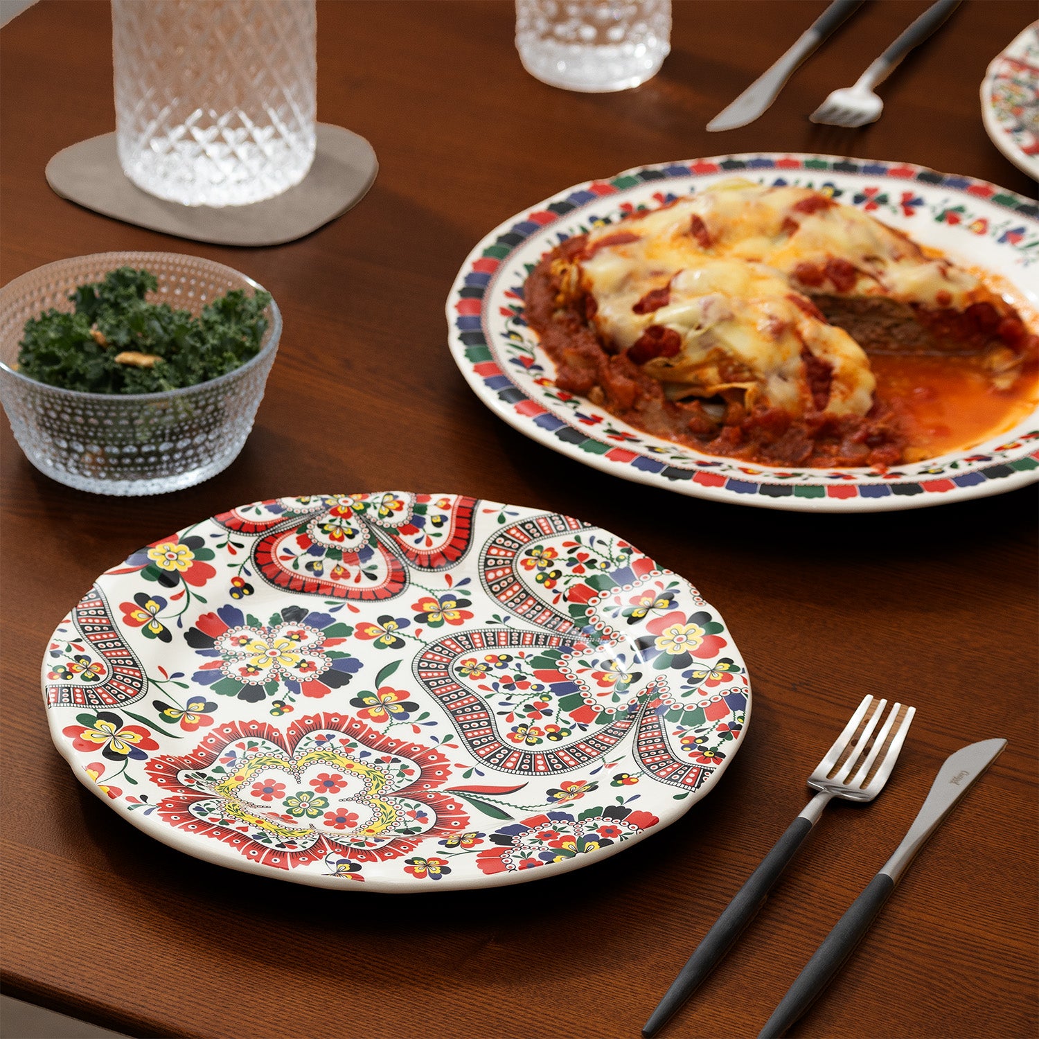 これにより、テーブルの上で柄を組み合わせ、自由にコーディネートを楽しめる遊び心あるスタイルが完成。