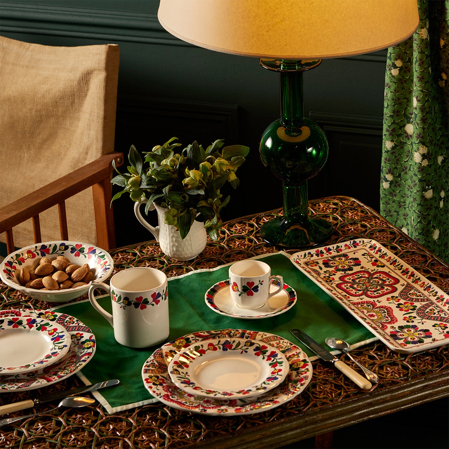 鮮やかな色彩とクローバーのパターンが、食卓に幸福感とポジティブな雰囲気をもたらします。